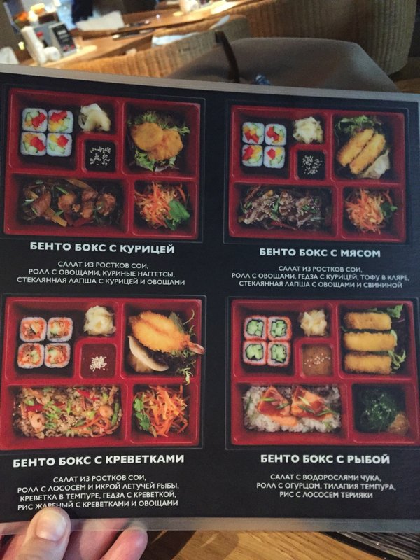 В нашем меню представлены блюда русской, паназиатской (тайской) кухни, из которых самой популярной, пожалуй, является русская. Традиционные кулинарные творения откроются вам с новой стороны. Чего только стоит выбор различных солений. Или закажите привычные супы, тушёные вторые блюда и печёные десерты.